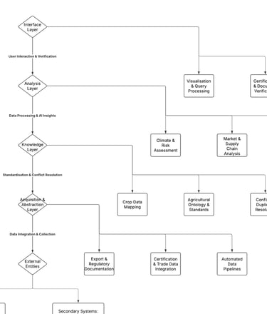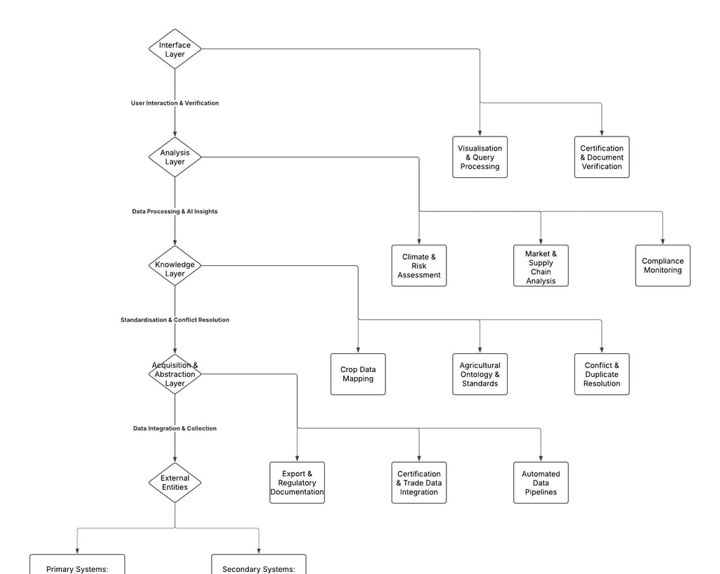 • Supply Chain Mapping: Visualises the entire agricultural supply chain, tracking products from farm to market.